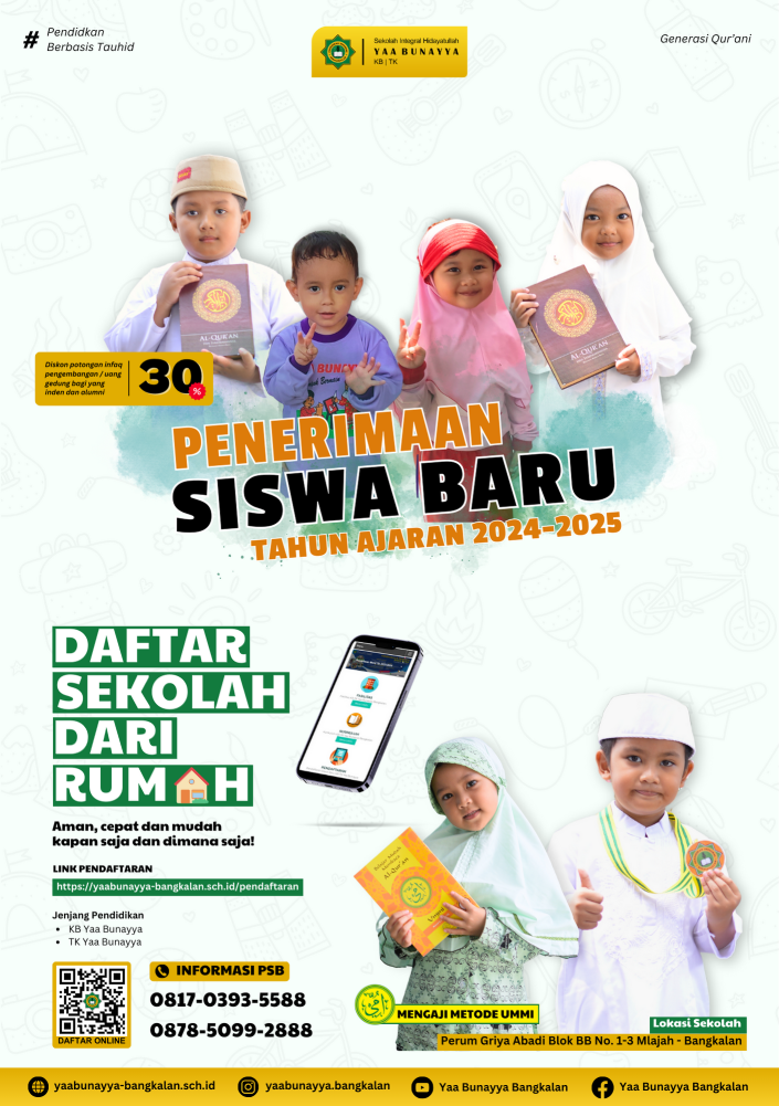 Telah dibuka Penerimaan Peserta Didik Baru (PPDB) Tahun Pelajaran 2024-2025, dengan jadwal dan detail seperti dibawah ini: SYARAT PENDAFTARAN Mengisi Formulir Pendaftaran (langsung ke sekolah) atau mengisi formulir online di website:http://yaabunayya-bangkalan.sch.id/pendaftaran Fotocopy KK, KTP orang […]